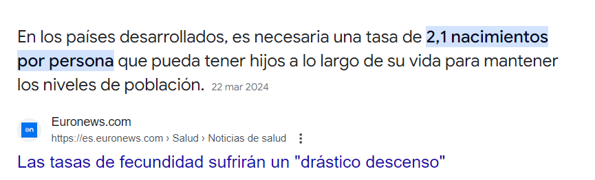 En general, los países necesitan tener una tasa de fertilidad total (TFR) de 2.1 hijos por persona capaz de dar a luz, para mantener el reemplazo generacional a largo plazo de la población.