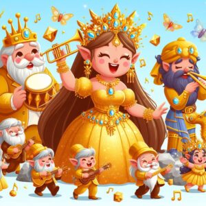La ciudad estaba empezando a animarse, y como si fuera una respuesta a esa alegría, música y canciones empezaron a resonar por todas partes. Las canciones eran melodiosas y envolventes, y los aventureros se sintieron maravillados por la belleza de la ciudad y por la hospitalidad de sus habitantes