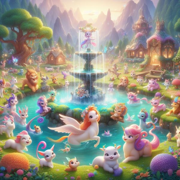El lugar estaba lleno de árboles frutales, estatuas de colores y flores preciosas. Y en medio de todo, una hermosa fuente donde todos los pequeños seres se reunían. Entonces, una de las criaturas se acercó al grupo de aventureros y dijo: “Bienvenidos a nuestra ciudad, nuestra hoguera, nuestra casa”.