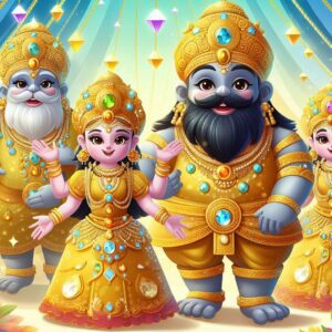 ¡De acuerdo! En el trono, había una figura altísima, vestida con una túnica azul reluciente. La figura parecía humana, pero era mucho más grande, y tenía una expresión muy serena. Al ver a los aventureros, la figura se inclinó con respeto y habló con una voz serena y atemporal.