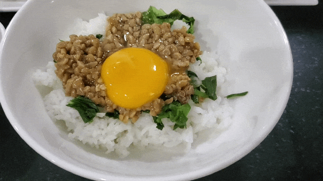 Entonces, cada vez que tengo la oportunidad de comer natto, lo disfruto con huevo crudo.
