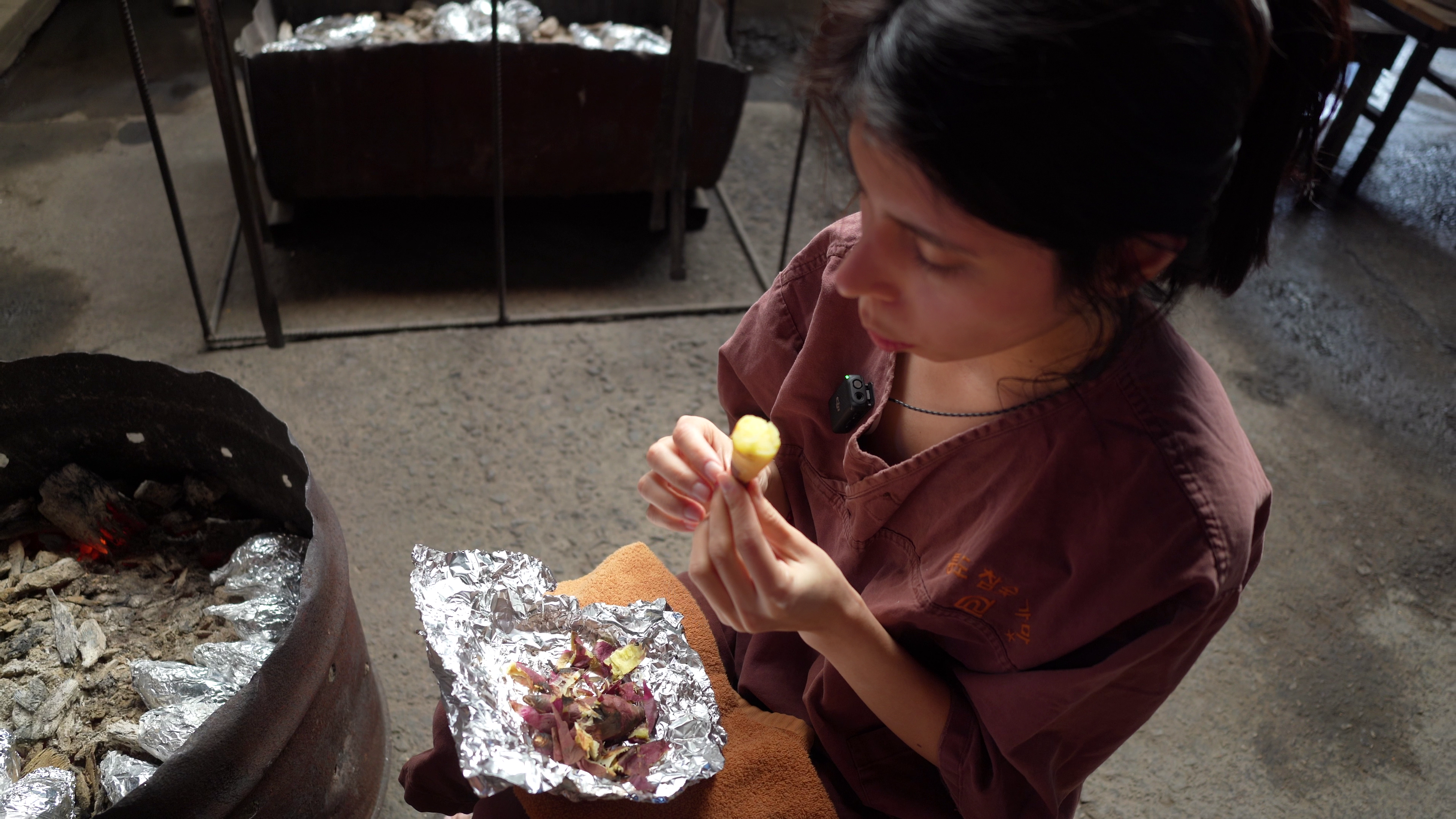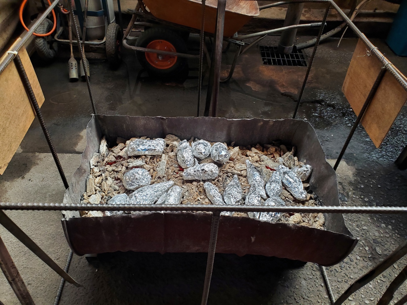 Al entrar a la sauna, encontré unas cacerolas con leña, ahí puedes colocar papa o camote envuelto con papel aluminio.